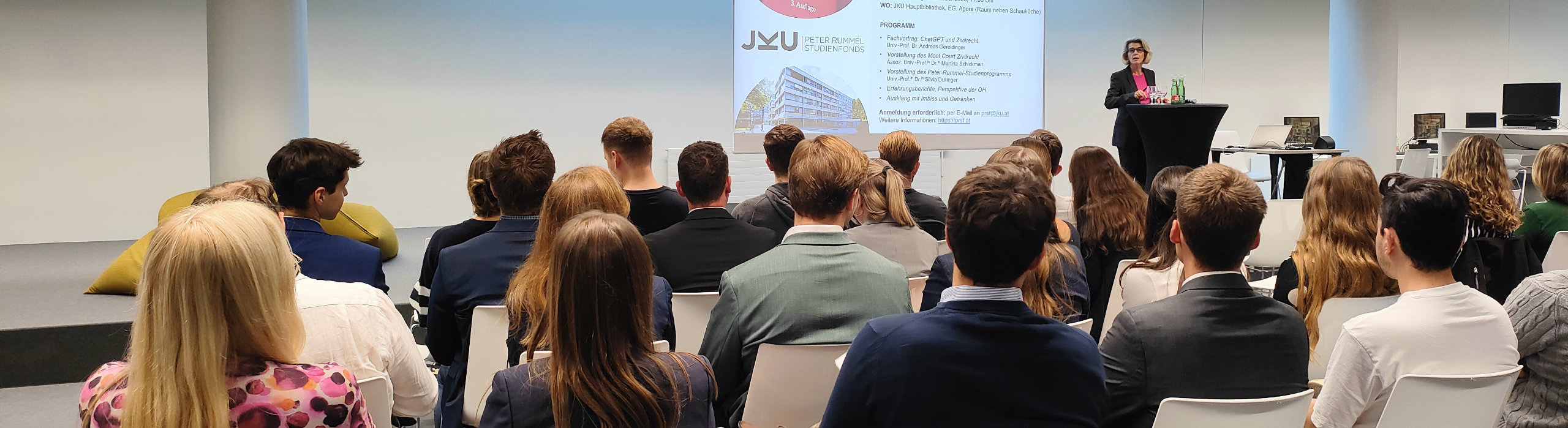 Im Rahmen des Peter-Rummel-Studienprogramms nehmen Sie im Wintersemester am Konversatorium „Verstehen und Wissen“ und im Sommersemester am Konversatorium „Falltraining und Argumentation“ teil. In diesen Lehrveranstaltungen profitieren Sie von Unterricht in Kleingruppen – wie an anglo-amerikanischen Eliteuniversitäten und können Ihre Kenntnisse und Ihr Verständnis des Bürgerlichen Rechts vertiefen. Das Konversatorium „Verstehen und Wissen“ soll parallel zur Absolvierung der im Regelstudium vorgesehenen Kurse und der AG Bürgerliches Recht besucht werden; der Besuch des Konversatoriums „Falltraining und Argumentation“ erfolgt parallel zu den Kursen und der UE Bürgerliches Recht.